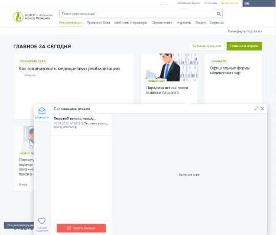 Пользователь Электронной Системы получает ответы на вопросы в области здравоохранения, и помогают ему в этом действующие эксперты